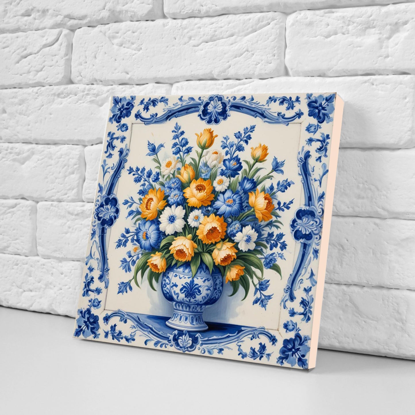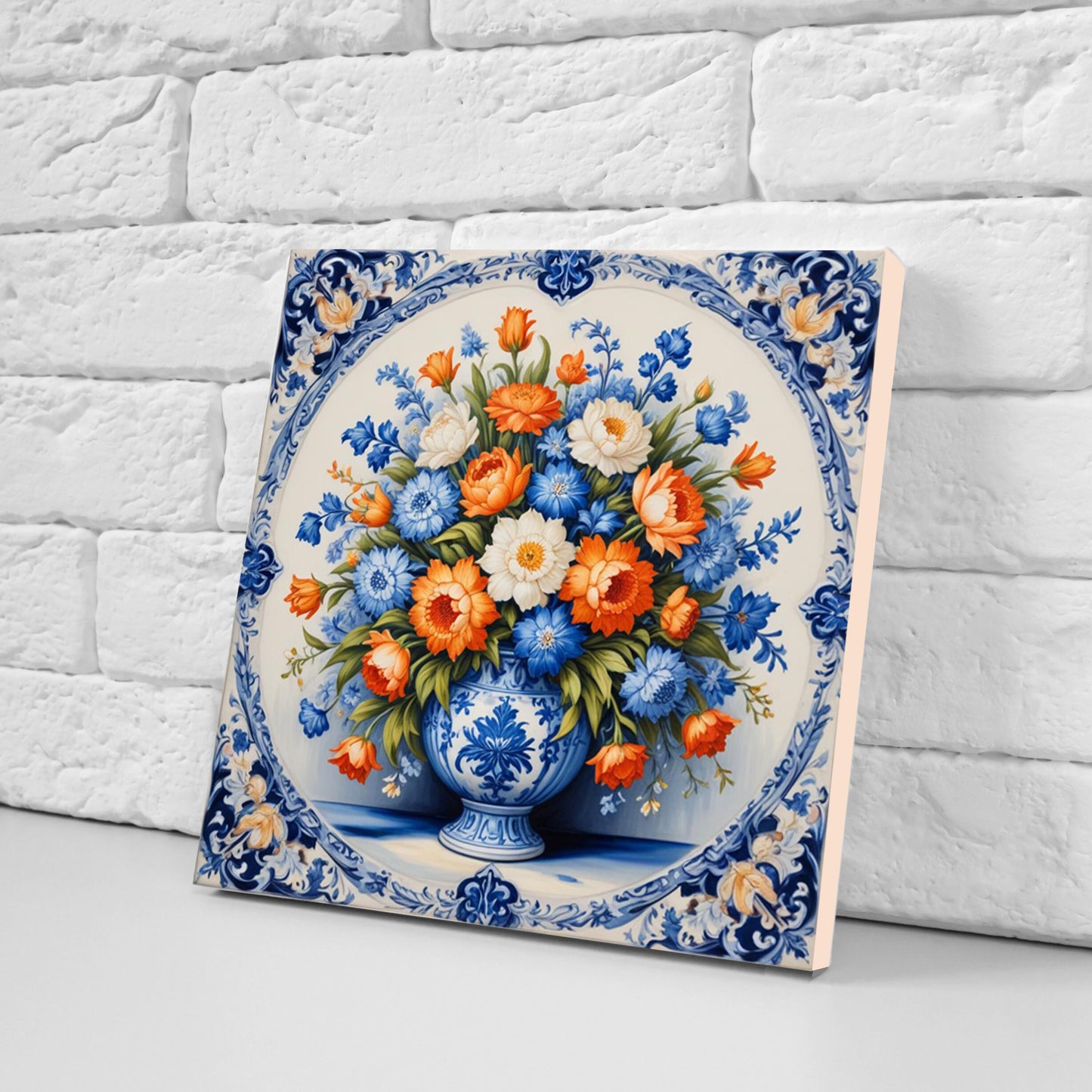 Delft Flowers Print Ceramic Tiles - Set of 3 Ceramic Decor Tiles - Kitchen Backsplash Tiles, Bathroom Tiles, Botanical wall art