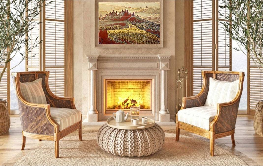 Tile Mural/Mosaic Ceramic Panel of Tuscany Vineyards - Italy - Italian Landscape Mural - Wall Art - Tuscany Mural - Tile Mosaic